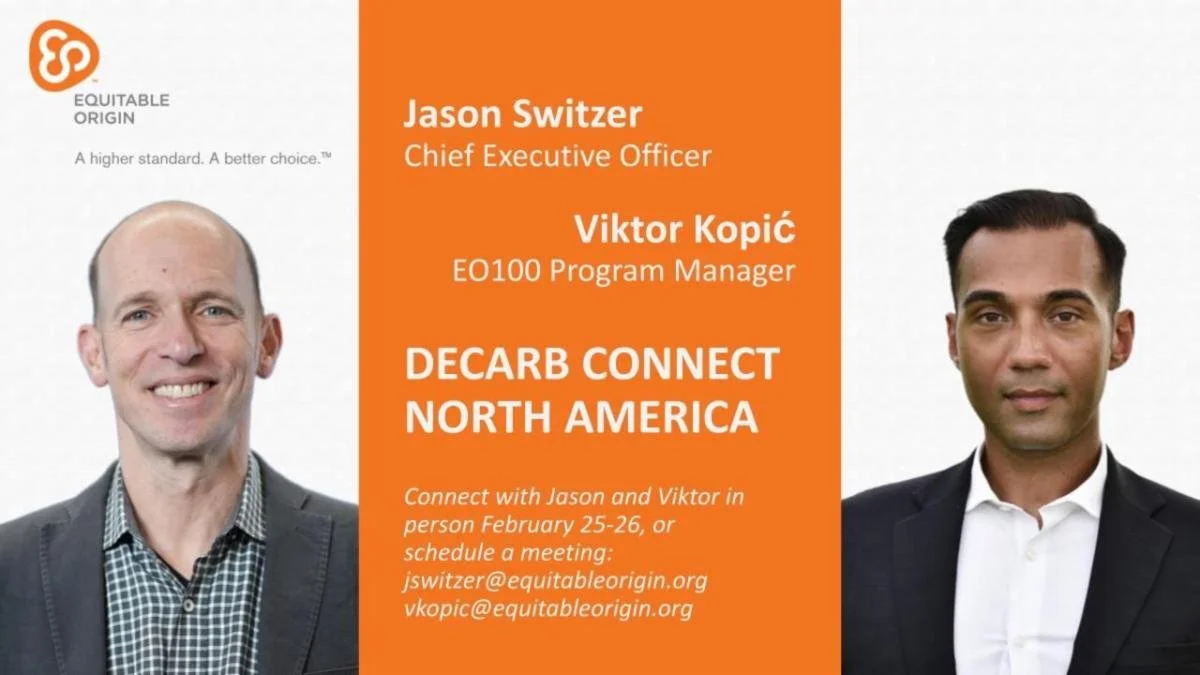 Equitable Origin's Jason Switzer and Viktor Kopic were recently in Houston to attend the Decarb Connect North America conference and Emissions Tracking, Reporting and Compliance Conference, hosted by the Energy Conference Network.